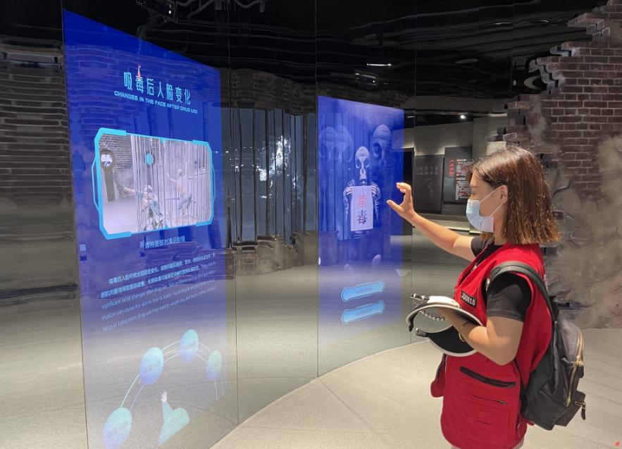 輕觸按鈕即可觀察毒品原株生長(zhǎng),開(kāi)關(guān)木門(mén)即可挑戰(zhàn)5種吸毒誘惑,宣誓禁毒即可上傳簽名至漢陽(yáng)樹(shù)上。6月26日是第36個(gè)國(guó)際禁毒日,當(dāng)日武漢市漢陽(yáng)區(qū)禁毒宣傳教育基地正式開(kāi)館,60余名禁毒社工與部分群眾參觀后,直呼科技感爆棚互動(dòng)性拉滿。